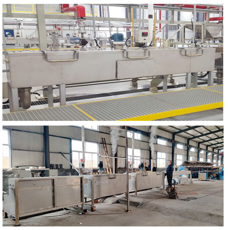 此設備是拉拔中、高碳盤條免酸洗磷化,在經(jīng)剝殼除銹的盤條上,采用涂硼工藝達到鋼絲拉拔表面增加潤滑 層,起到與浸泡磷化、電解磷化相同的效果,主要適用干式拉拔。有效減少環(huán)境危害,適用范圍直徑5.5-12的 中、高碳盤條,可單線、雙線設計。